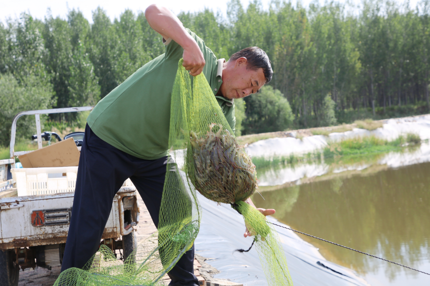 南美白对虾的养殖从每年的6月份开始,到10月份出塘,需要巡视、喂食、打扫,如此一来,就为周边村里的“剩余劳动力”提供了家门口的工作岗位。基地附近亢庙村的王大爷今年62岁,已经在基地工作3年多,属于基地里的“老员工”了。提到基地的工作,王大爷笑得合不拢嘴:“离家就二里地,晌午管顿饭,月月拿工资,忙的时候捞捞虾,冬闲的时候清清塘,日子好着呢!”