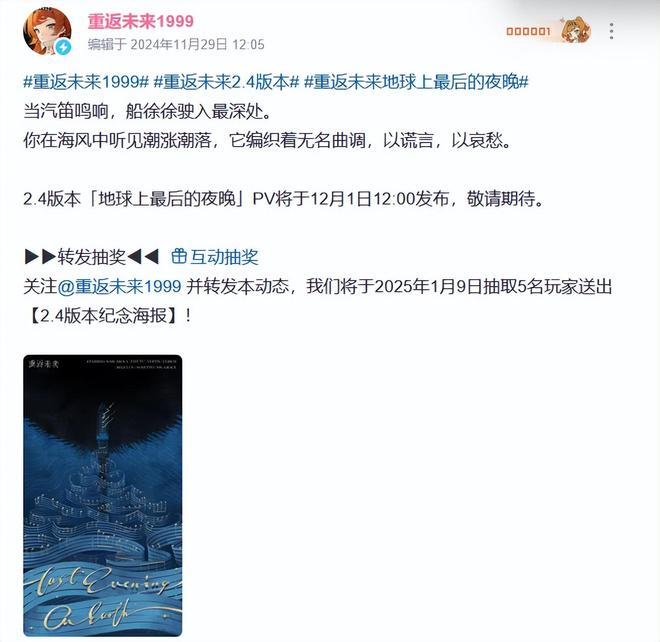有玩家质疑郎朗8月24日发布的音乐会宣传海报直接挪用重返未来1999的海报素材,1999去年11月底发布的2.4版本【地球上最后的夜晚】海报与钢的琴海报风格元素极为相似,蓝色乐谱飘荡金色文字,之后郎朗艺术世界交流中心官方发布通告致歉函表示这是委托第三方设计的海报,目前已经下架并启动内部核查程序,深表歉意。